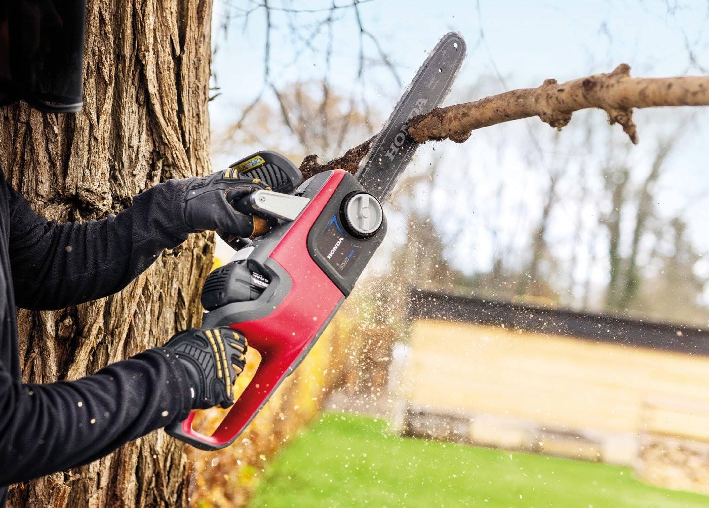 - De kettingrem brengt de ketting tot stilstand zodra een voldoende sterke terugslag de kettingrem activeert. De gebruiker wordt beschermd tegen ongevallen door de zogenaamde terugslag.