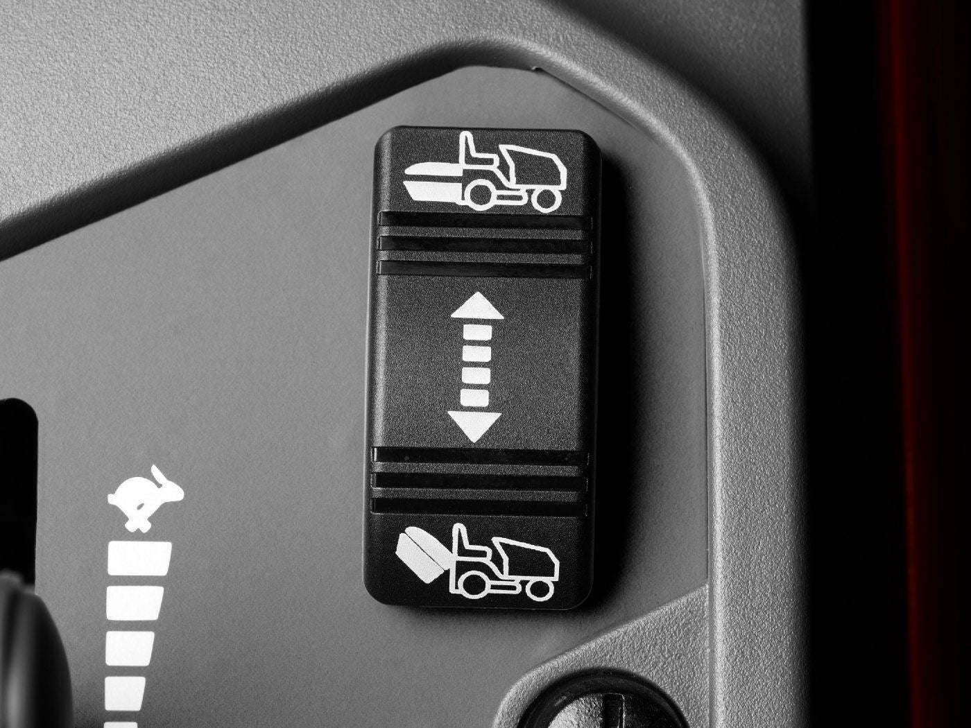 Elektrisch legen van de grasopvangbak maakt het ledigen tot een zeer eenvoudige job