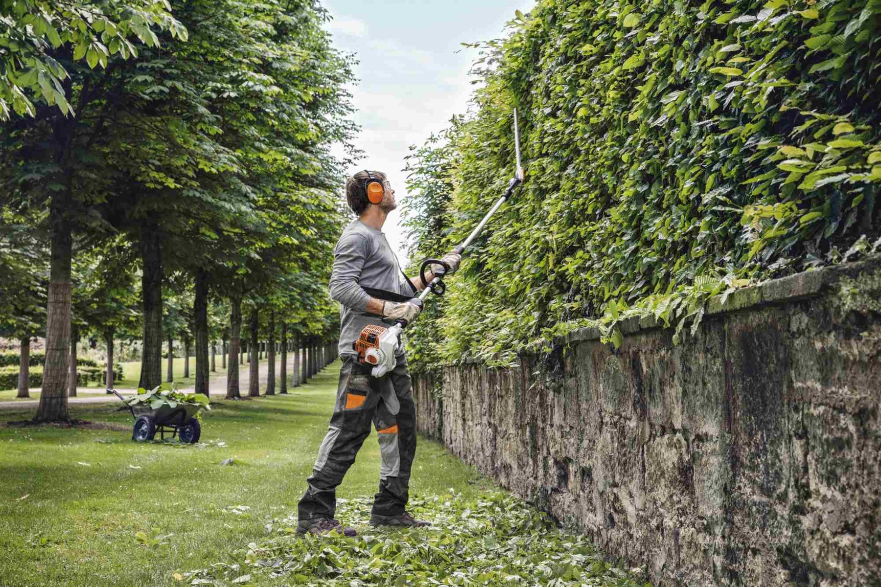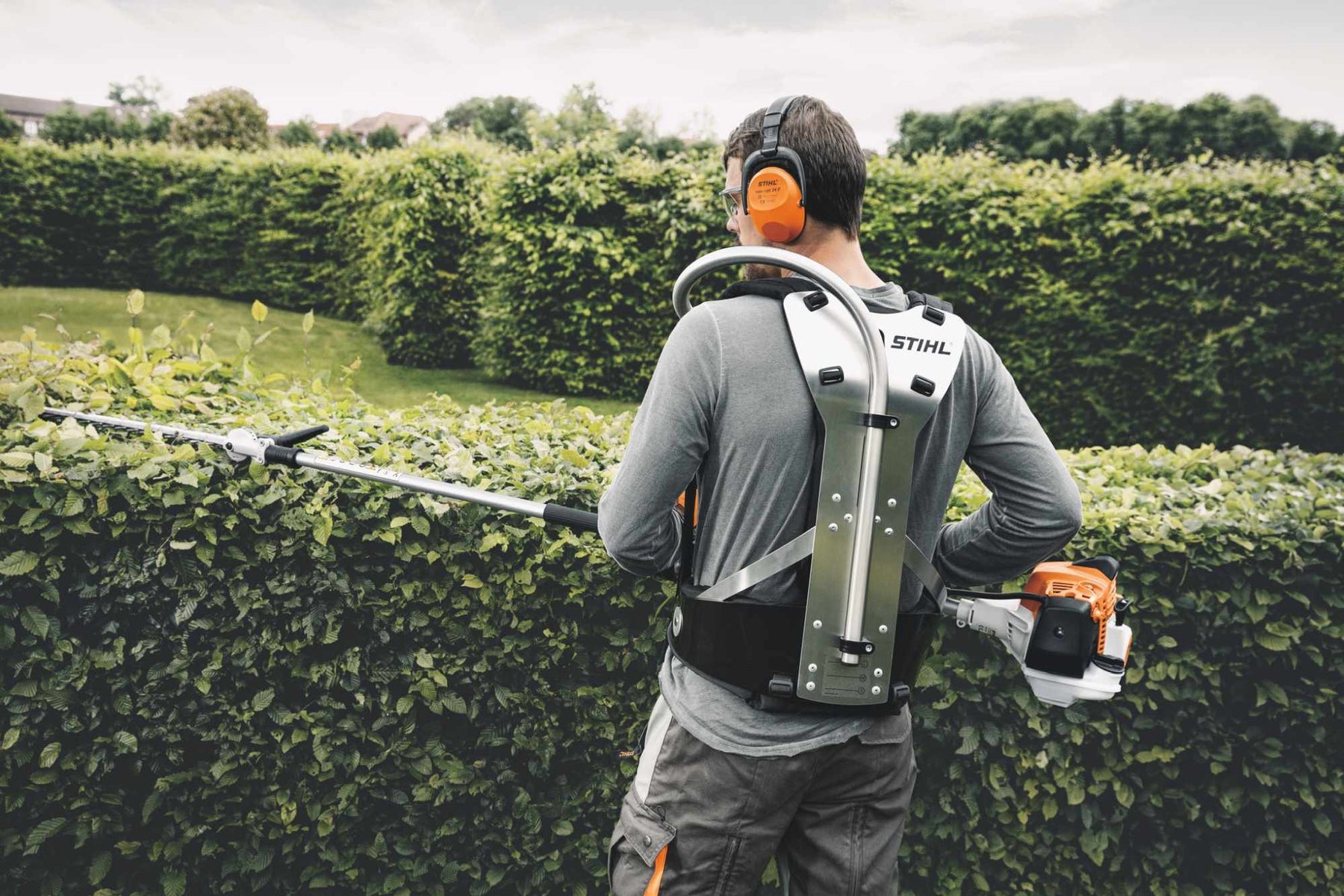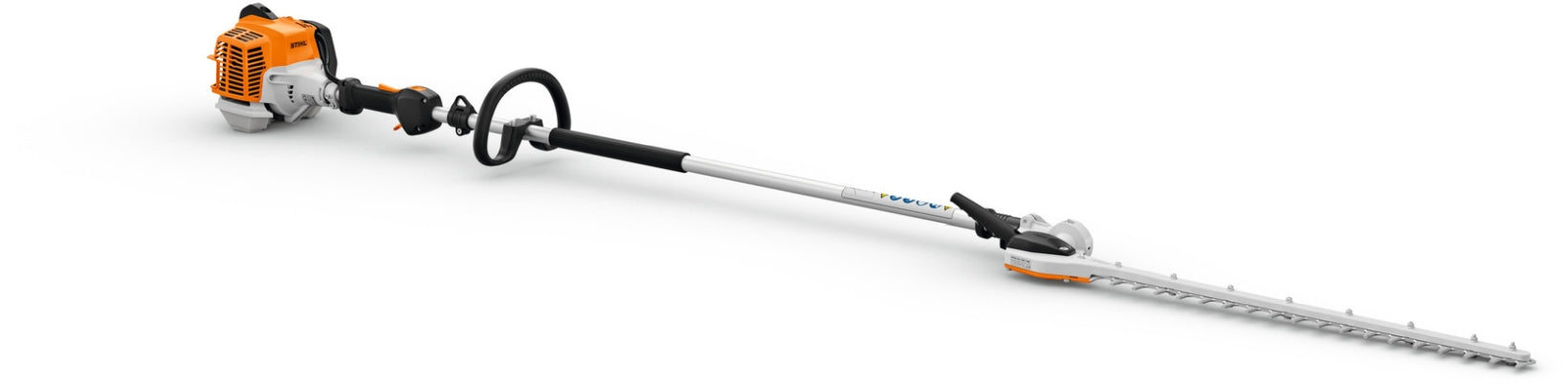 Voor professioneel werk aan hoge heggen en gebruik dicht bij de grond. Gewichtsbesparende transmissie, 2-MIX-motor met ECOSPEED voor toerentalregeling voor lange werkintervallen in geluidsgevoelige omgevingen, STIHL ErgoStart, 145° zwenkbare messenbalk, totale lengte 242 cm.