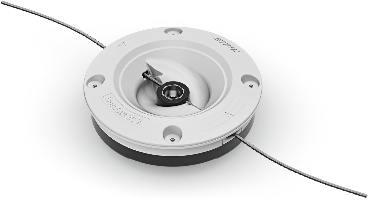 De STIHL DuroCut 20-2 is een maaikop met twee draden die in combinatie met de geschikte STIHL motorzeis overtuigt door zijn eenvoudige bediening en grondig maai- en snoeiwerk mogelijk maakt, zelfs in taai gras. Voor de draadmaaikop worden 2 stukken draad van bijzonder slijtvaste en duurzame materialen gebruikt. De draadmaaikop STIHL DuroCut 20-2 is compatibel met verschillende maaidraden, die zonder gereedschap in het apparaat kunnen worden gestoken. Bij aankoop van de maaikop DuroCut 20-2 worden al 12 stukken draad XL meegeleverd.